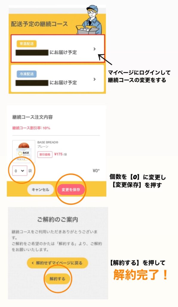 ベースブレッドの継続コースはすぐには解約できないのでは?と不安をお持ちの方も多いのではないでしょうか。