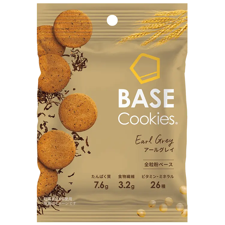 紅茶アールグレイの香り高いクッキーです。こんなに美味しいのに、BASEのクッキーだから、栄養の心配無く、いや寧ろ、栄養を摂る!ぐらいのつまりで食べられます。本当に幸せなおやつタイムです。