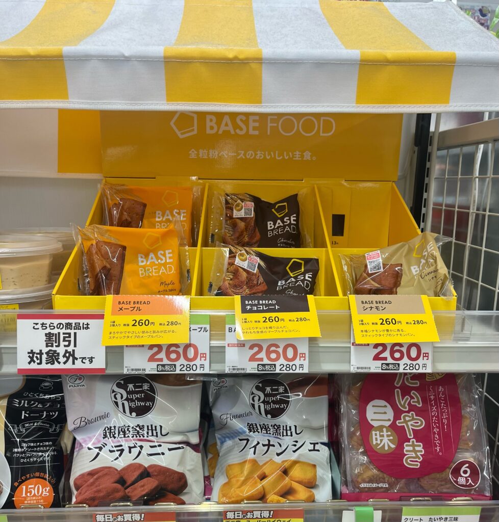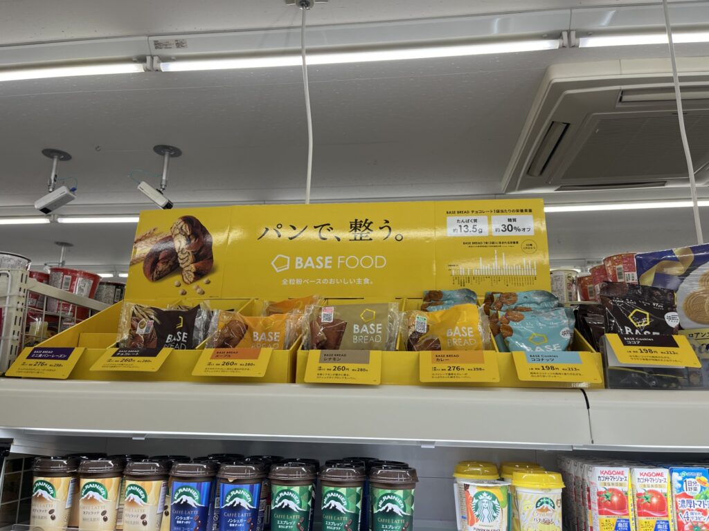 コンビニに比べると店内は広いですが、そもそもべースフードのコーナーが小さくて、ベースクッキーも置いていませんでした。
