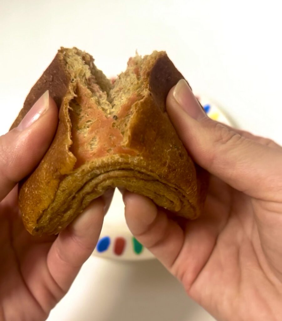 先ほどトーストしたほうが甘く感じるとお伝えしたのですが、実際の断面を見てください!