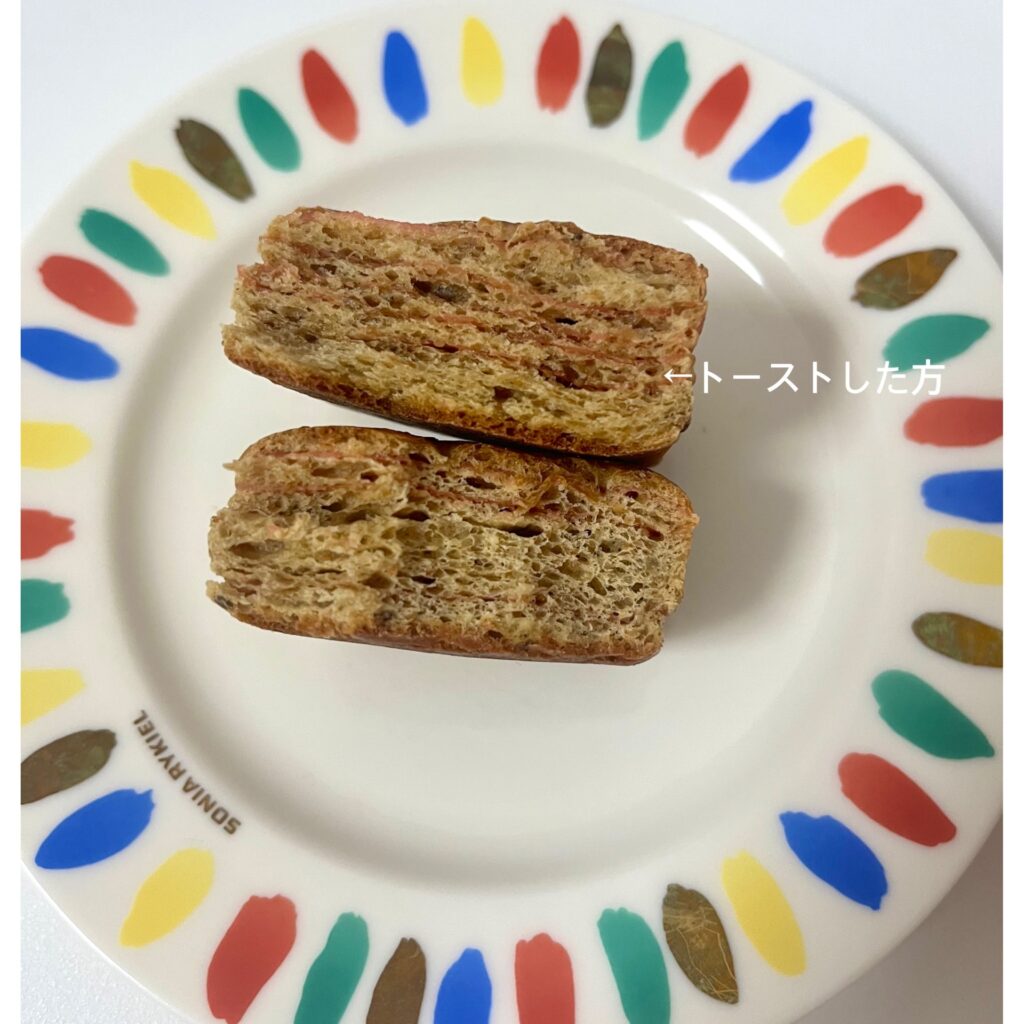 食べ方としてはトーストしたほうが、全粒粉のほろ苦さが消え生地もふわふわになるのでオススメです😉