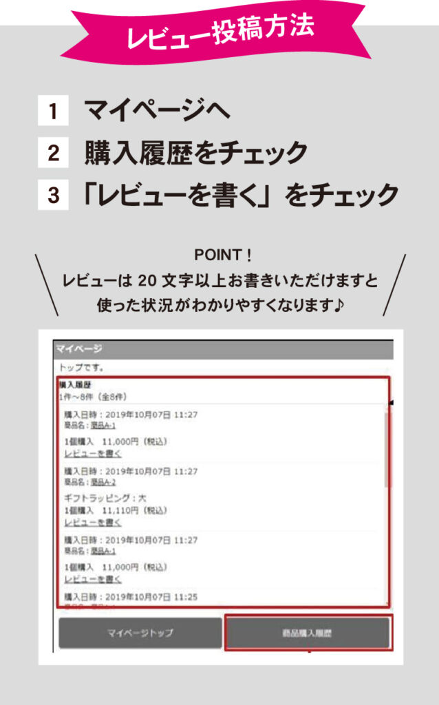 ここからレビューを投稿することでポイントをもらうことができますので、ぜひ購入後はご活用ください♪