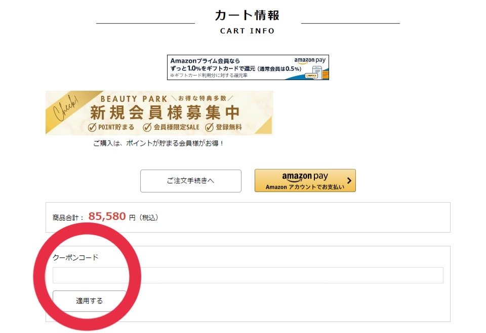 ↓ビューティーパークで購入するときに使えるクーポンこちら↓