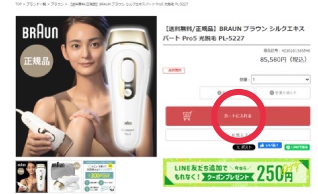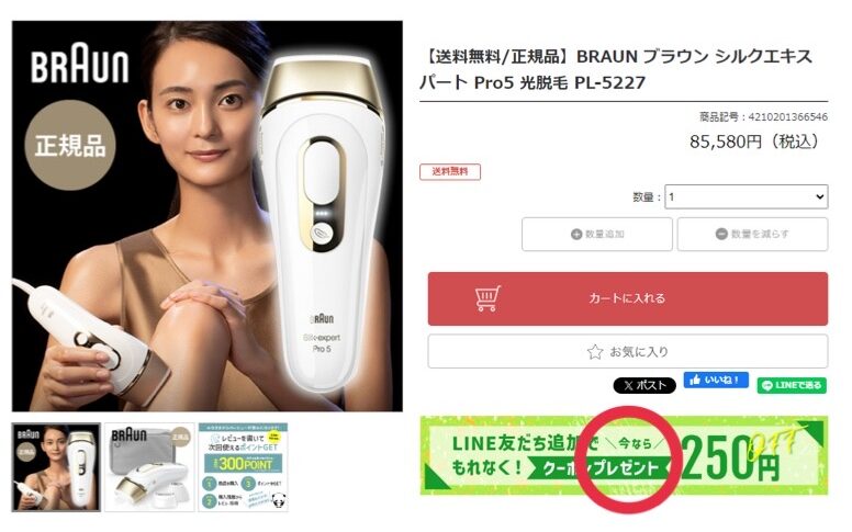 カートに入れ商品購入時に『SPECIAL COUPON』と出てきますが、残念ながらブラウンシルクエキスパートPro5購入時には使用できません。