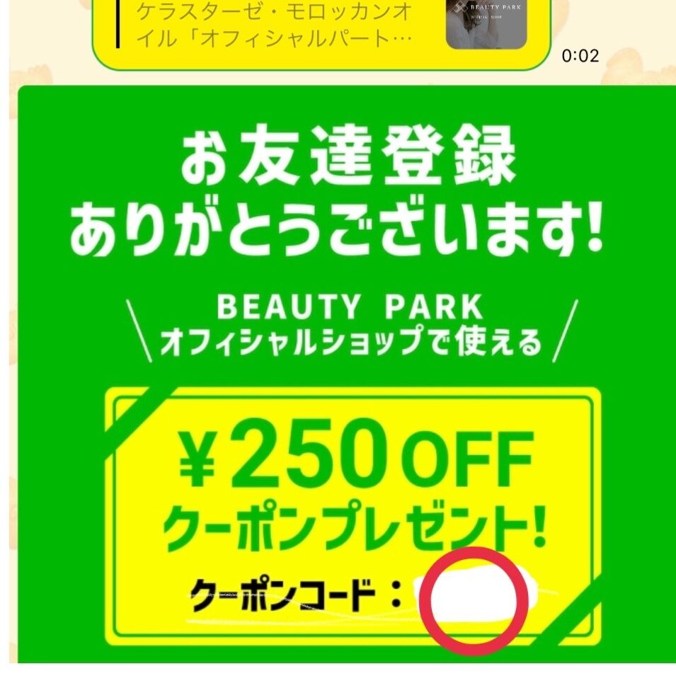 ビューティーパークではLINEの新規友達追加で250円引きのクーポンがもらえます!