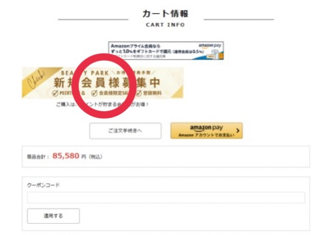 ②カート内にある『新規会員様募集中』を押す
